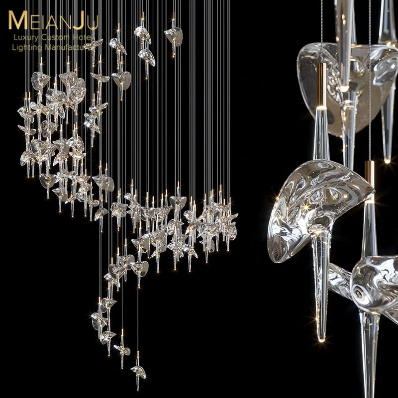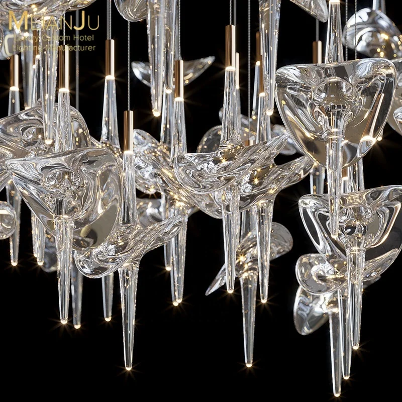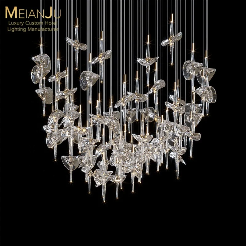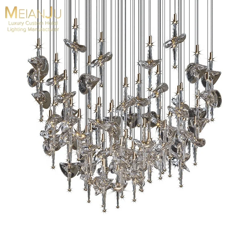 Customized Contemporary Glass Chandelier with Sand Table Design for Hotel Villa Club Front Desk Room Decor